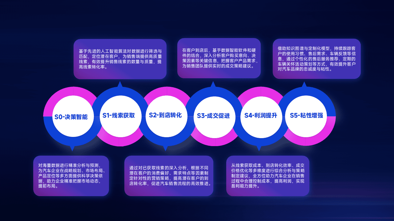 通过拓宽潜在客户来源、、、优化线索分配并提高到店转化率,,,以增强销售效率。。。。同时,,利用线索数据不断优化分析模型,,有效提升转化率,,,扩大营销影响力。。